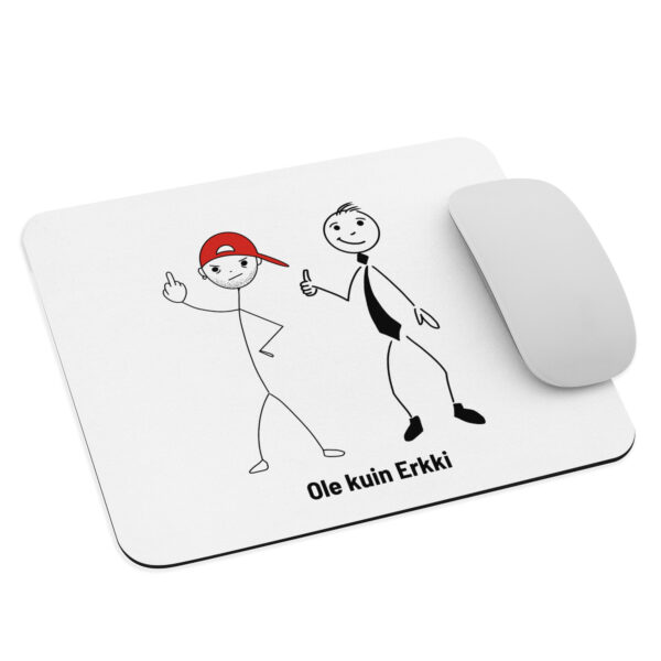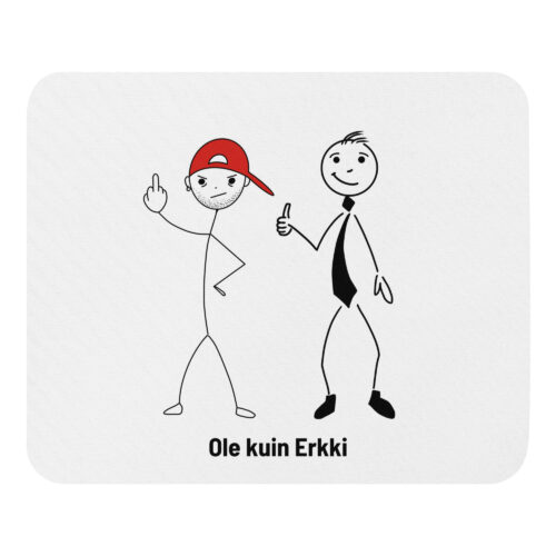 Olitpa tekemässä töitä tai törmäämässä juuri päivän ensimmäiseen Jariin, tämä hiirimatto muistuttaa, että kaikki reaktiot eivät ole samanarvoisia. Erkki näyttää peukkua. Jari näyttää keskisormea. Erkki hoitaa asiansa rauhallisesti. Laadukas pinta takaa hiiren sulavan ja tarkan liikkeen ja pitävä pohja pysyy paikoillaan, vaikka maailma välillä ärsyttäisi. Tämä hiirimatto sopii työpöydälle, jossa arvostetaan järkeä ja sitä, että aina ei tarvitse olla Jari. Laita hiiri matolle ja muista: Ole kuin Erkki.